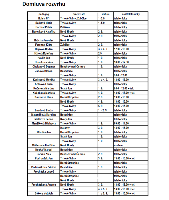 Úvod > O škole > Aktuality > Domluva rozvrhu jednotlivých vyučujících